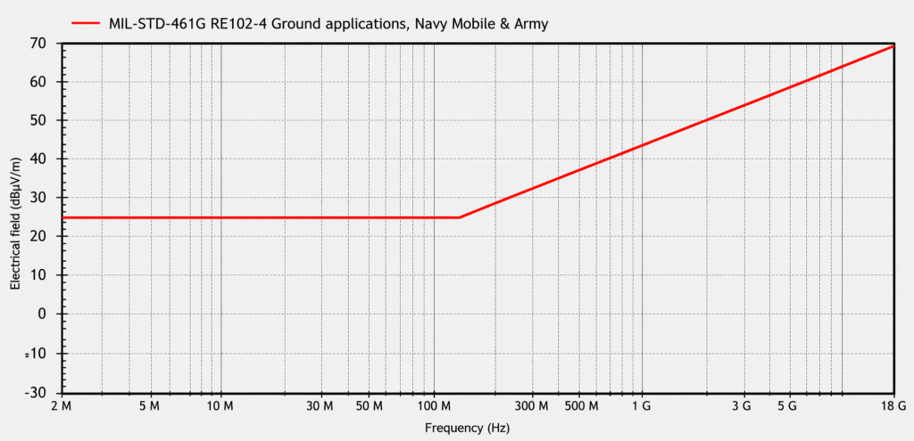 Askeri tarafta ise MIL-STD-461 RE test kurallarını tanımlar. Yalnız bu kurallar cihazın tasarlandığı alana (hava, kara, deniz vb.) göre çok fazla özelleşmektedir.